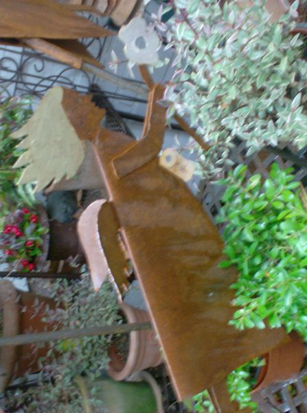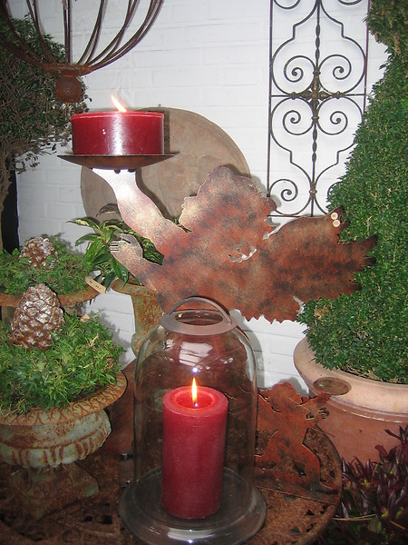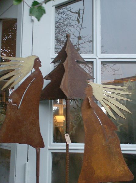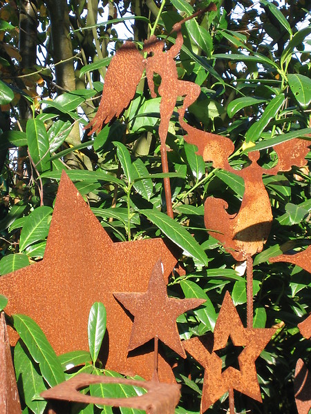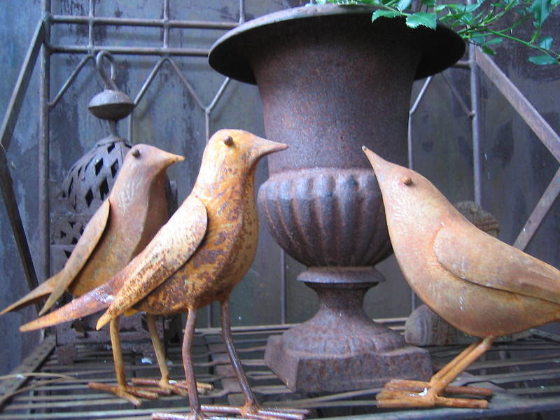 Dekorative Objekte aus rostigem, verwittertem Metall.
