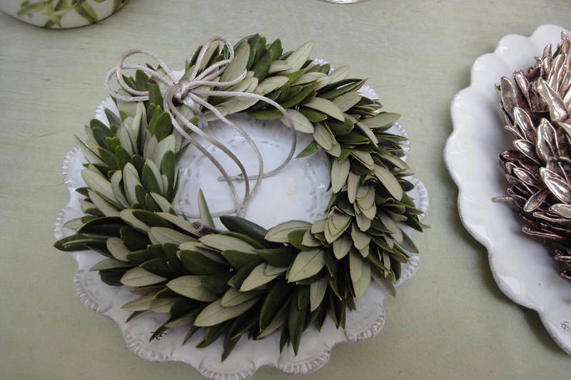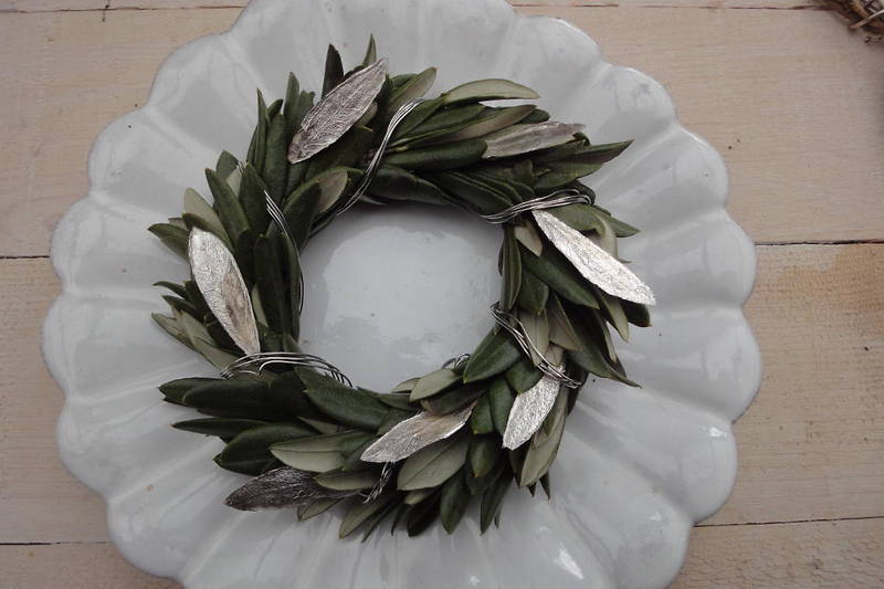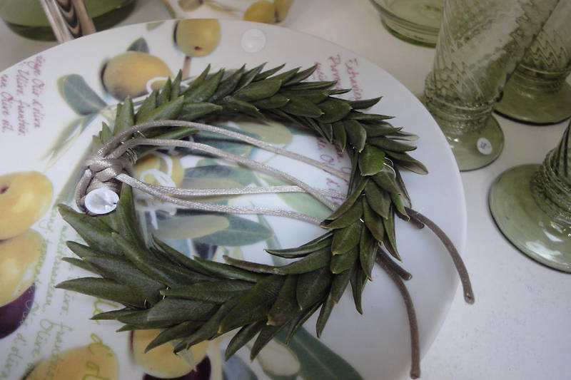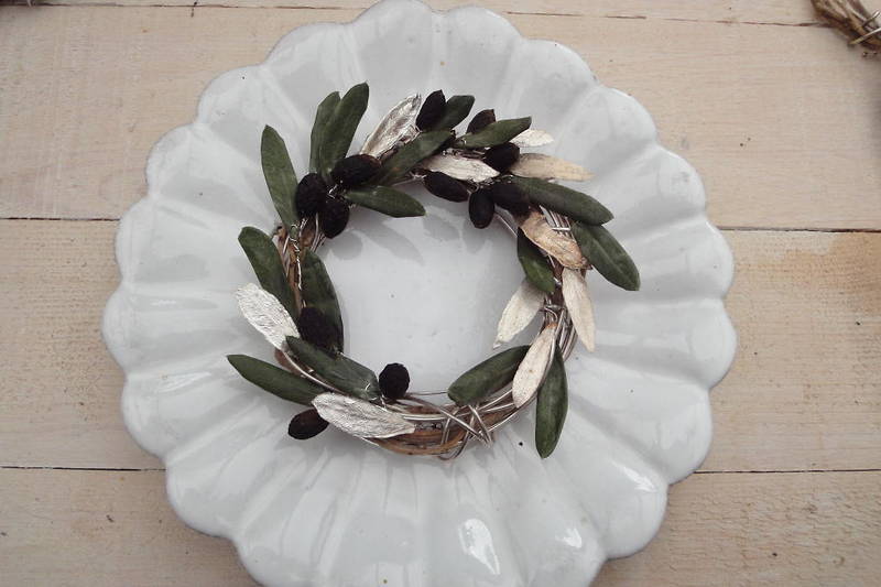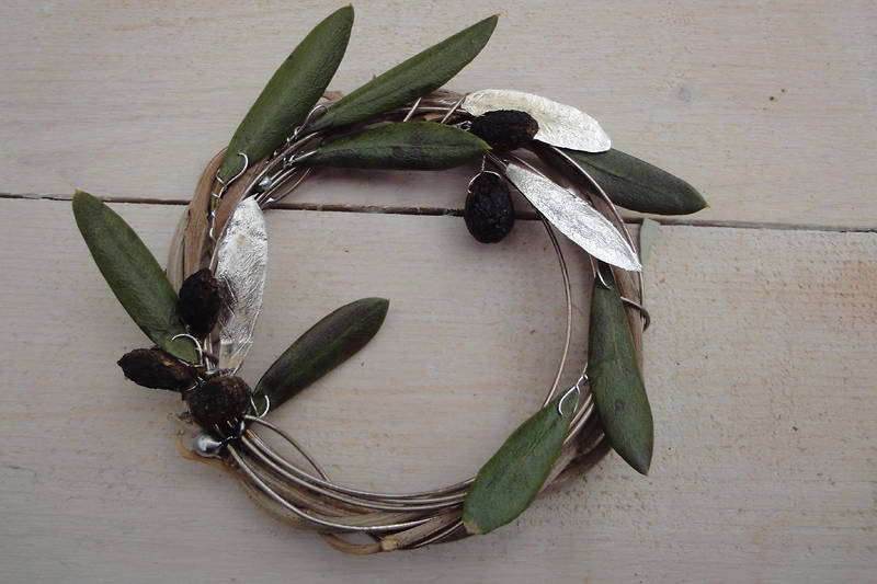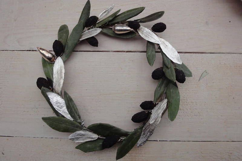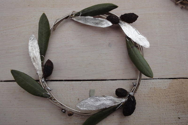 Alle Kränze sind selbstgefertigte Unikate mit reinem Silberdraht, echten Olivenbeeren getrocknet, echten Olivenblättern angedrahtet und selbstgefertigten Olivenblättern aus reinem Silber.